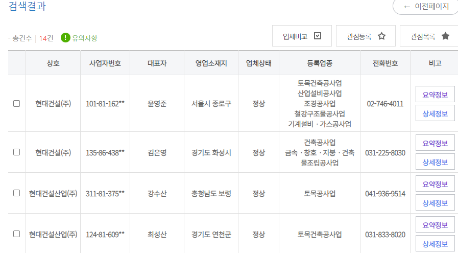 - 업체 정보 검색 – 상호, 사업자등록번호로 업체의 등록 상태, 재무정보, 계약규모를 조회합니다.