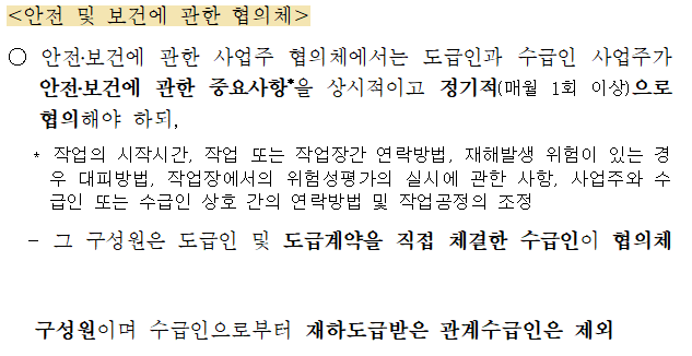 - 건설현장: 하도급이 없다면 협의체 불필요